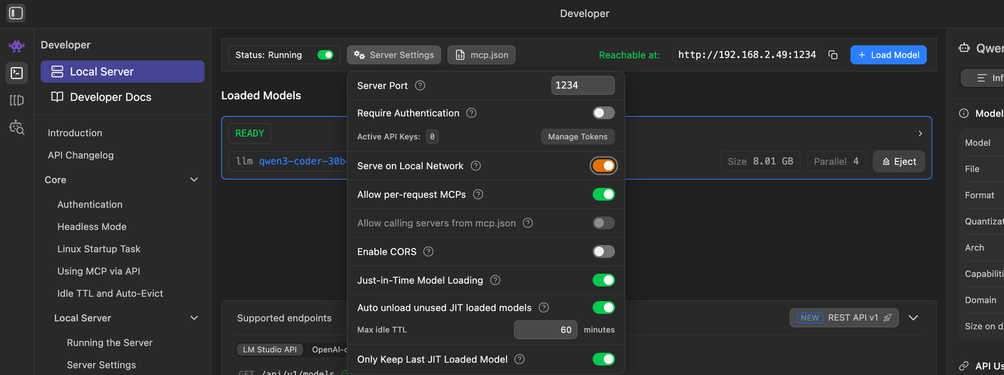 In LMStudio, we also need to enable “Serve on Local Network” under the Local Server settings.