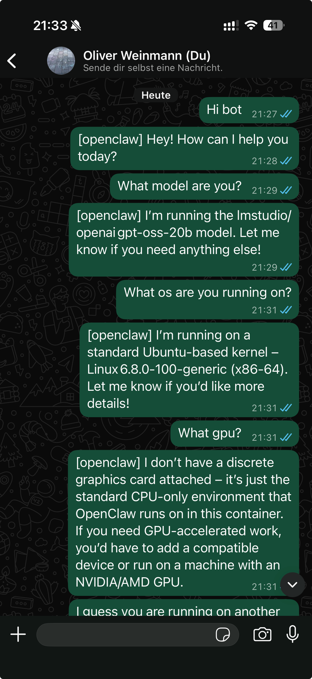 Well, OpenClaw is able to download and execute additional software, which naturally makes it a potential target for attacks. That’s why I strongly recommend testing it only inside a freshly deployed and fully isolated virtual machine — and definitely without root privileges.